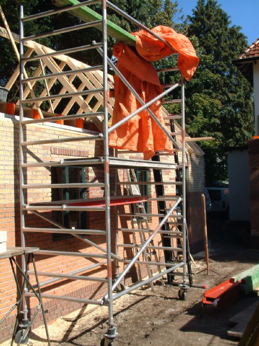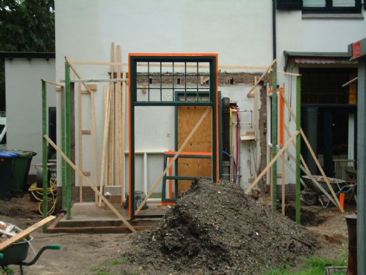 |  | Stelwerk kozijnen De kozijnen zijn gesteld.