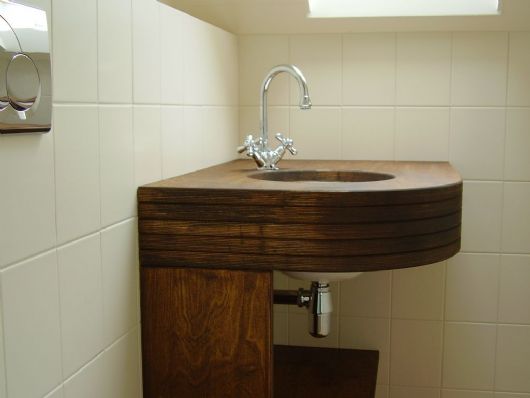 Detail wastafel. Toilet op de 1ste etage. Ontwerp: BOUWRAADGEVER