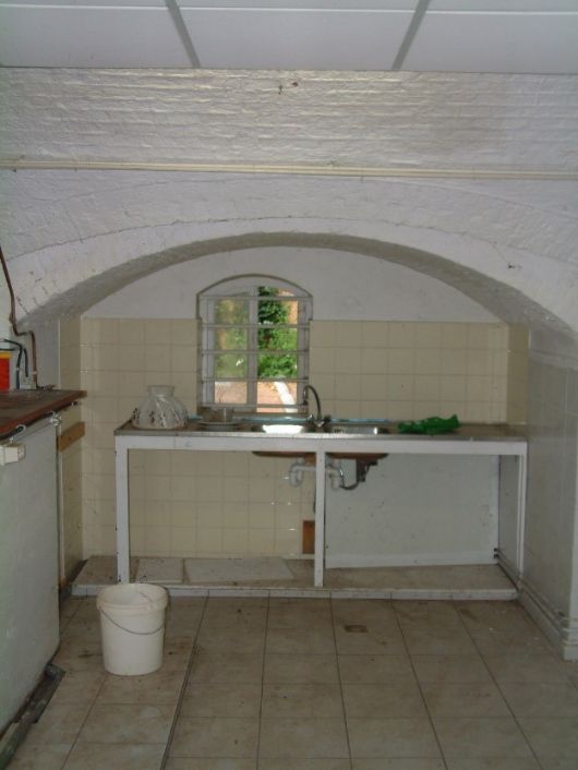 Een indruk van de staat waarin wij het inpandige van het fort bij aanvang van onze werkzaamheden aantroffen. Door houtrot aangetaste luiken en kozijnen en vloertegels en een systeemplafond die in het geheel niet passen bij een dergelijk bouwwerk. |